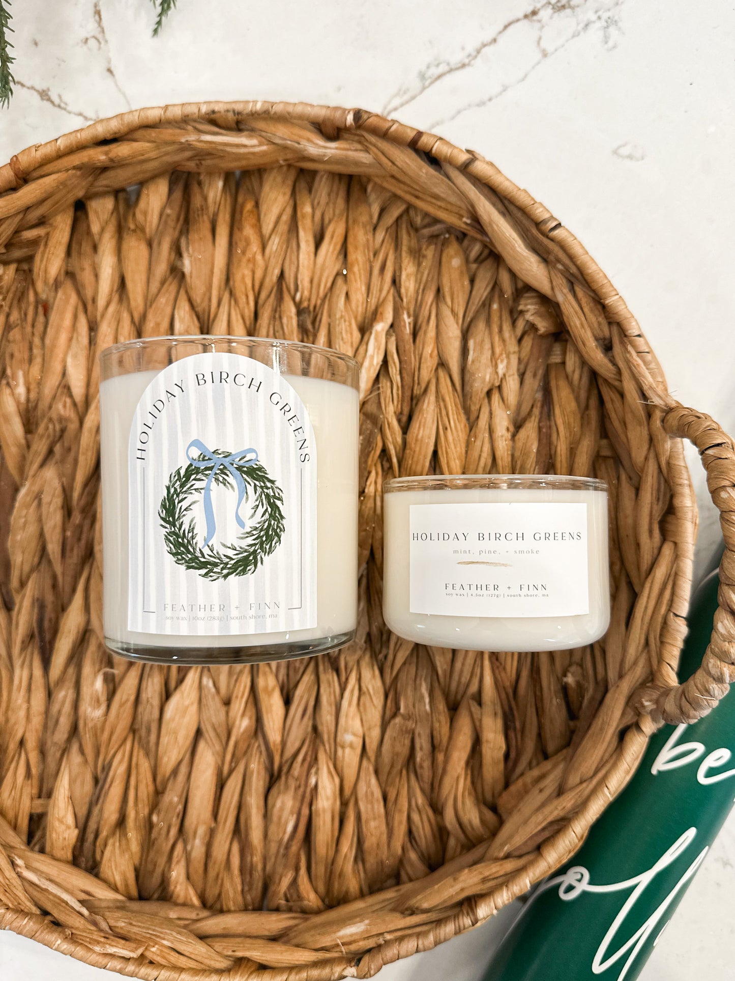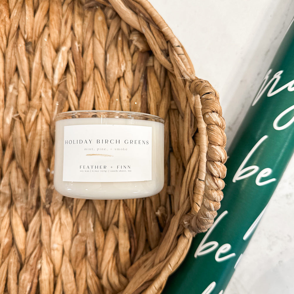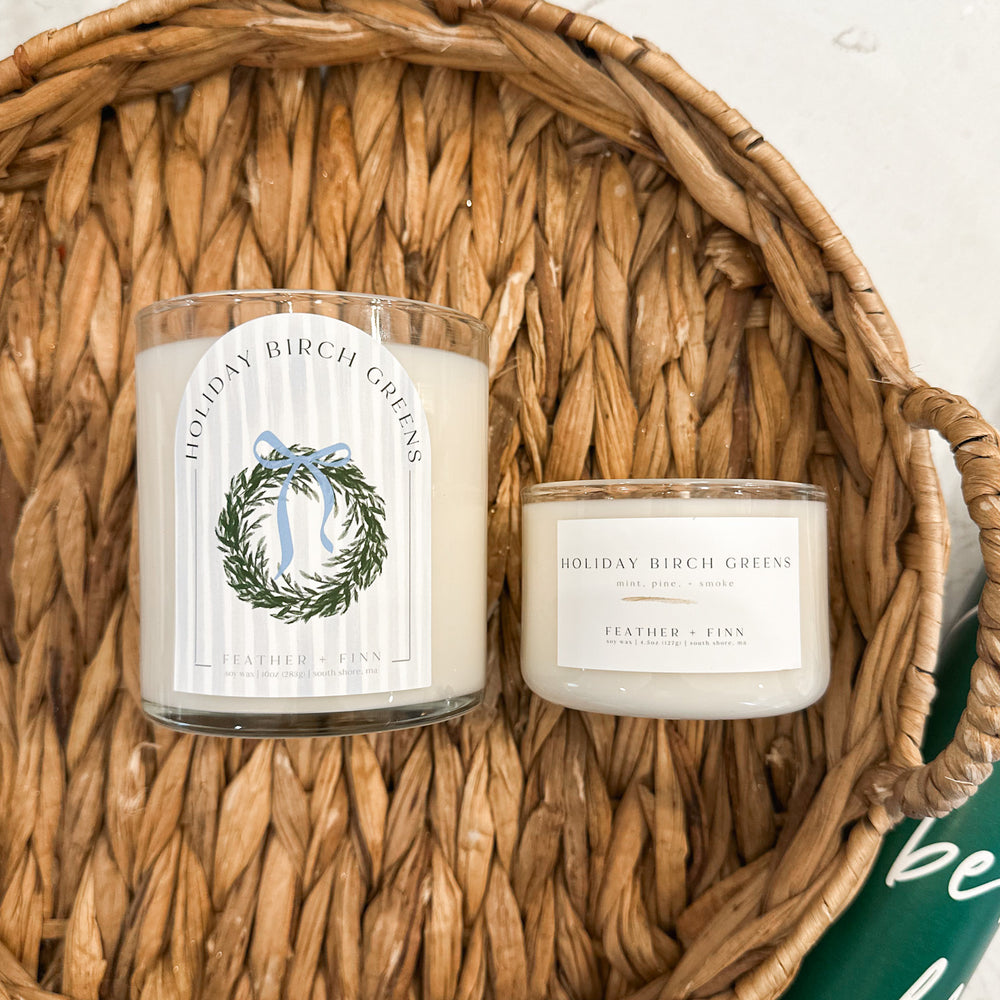 holiday birch greens layers frosted pine + crisp eucalyptus with smoky warmth. it’s the scent of winter walks, cozy scarves, + the quiet magic of nature’s own holiday decor.