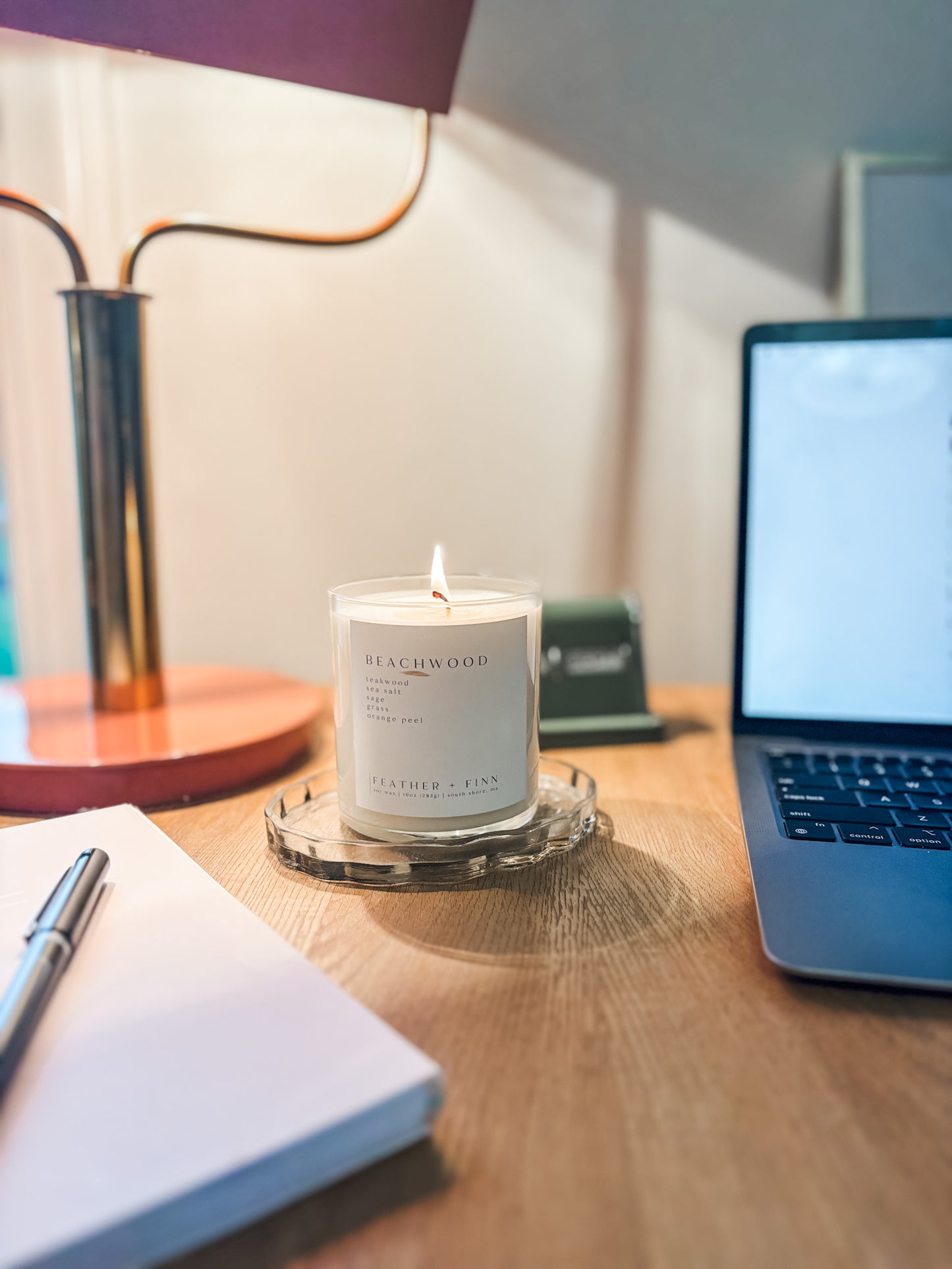 beachwood brings the essence of the shoreline into your home, balancing fresh, salty air with earthy depth. a scent that turns daily moments into a breath of clarity + ease.