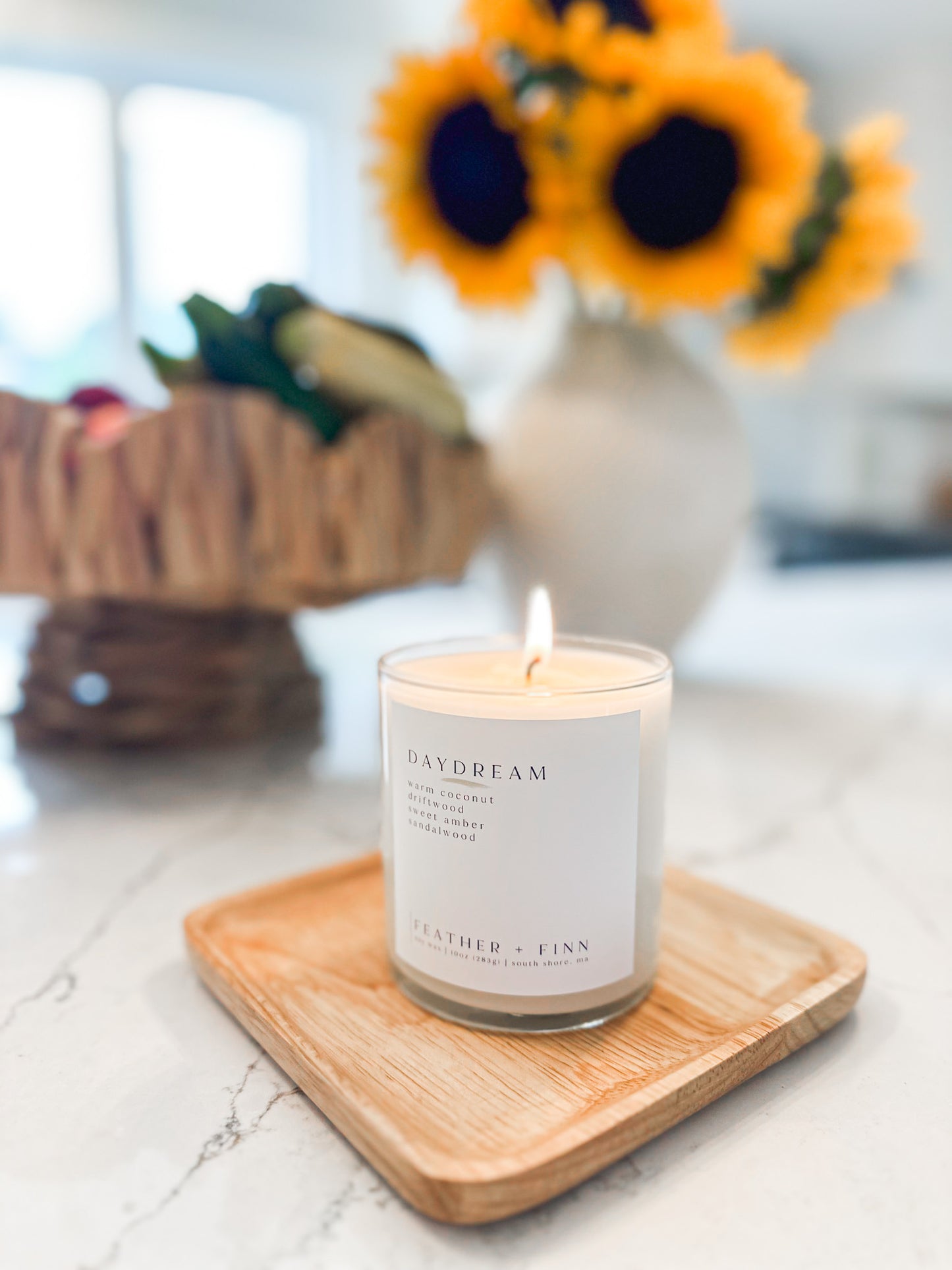 daydream drifts through your home like soft sunlight + slow afternoons, carrying notes of creamy coconut + grounding woods. the perfect scent for letting ordinary moments linger.